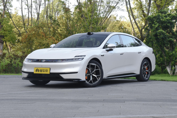 侧身线条是我喜欢的部分,前低后高的轮廓特别舒展,典型的低趴姿态,看着就很优雅。无框车门搭配半隐藏式门把手,不仅好看,还帮着降低了风阻;还有低风阻的无边框后视镜和轮毂,这些细节加起来,让风阻系数降到了0.205Cd,难怪续航这么能打。车身比例也很讲究,1.28的宽高比、3.0的轮轴比,让整车看着特别修长。