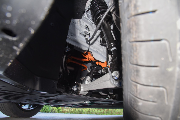 底盘是启源A06的一个加分项,前双叉臂+后五连杆的悬架组合,还是全铝材质的,簧下质量降低了近20%,加上46处软连接和液压阻尼自适应调节,滤震效果特别好;要知道这可是30万以上豪华车才有的配置。底盘调校是由德国团队和长安英国专家团队共同完成的,确实有两把刷子,他们以前调过不少好车,所以启源A06开起来既有支撑性,又不失舒适;过弯的时候车身侧倾很小,高速变道也很稳,不会有飘的感觉,走坑洼路面时,车身晃动很小,新手开也很有信心。